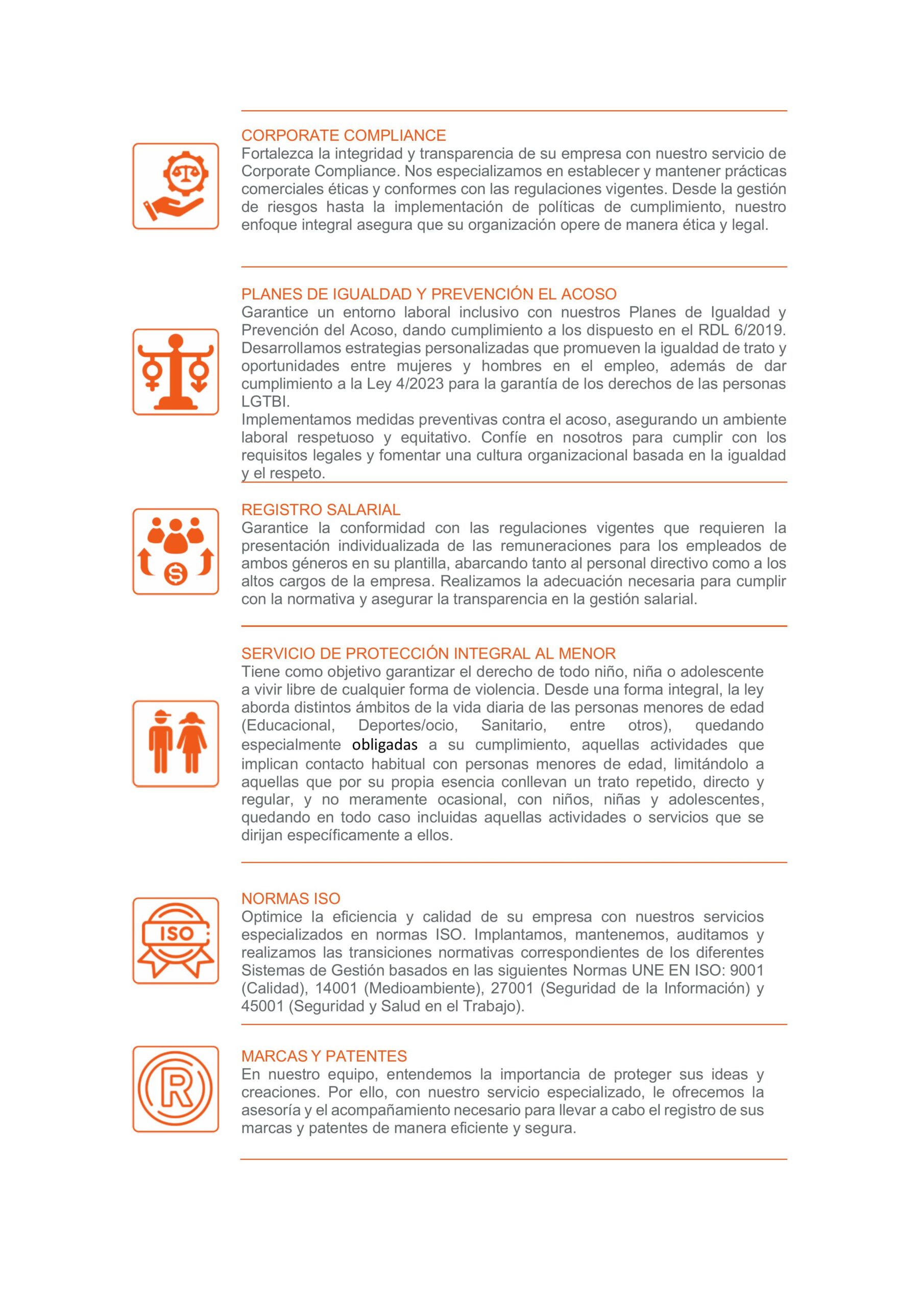 Nuestra misión es proporcionar a empresas, autónomos y organismos las herramientas y conocimientos necesarios para cumplir con la normativa vigente en los ámbitos de cumplimiento normativo. Nos dedicamos a ofrecer servicios especializados que garantizan la seguridad y confidencialidad de la información, ayudando a nuestros clientes a proteger su privacidad y la de sus usuarios de manera eficaz y conforme a la ley.